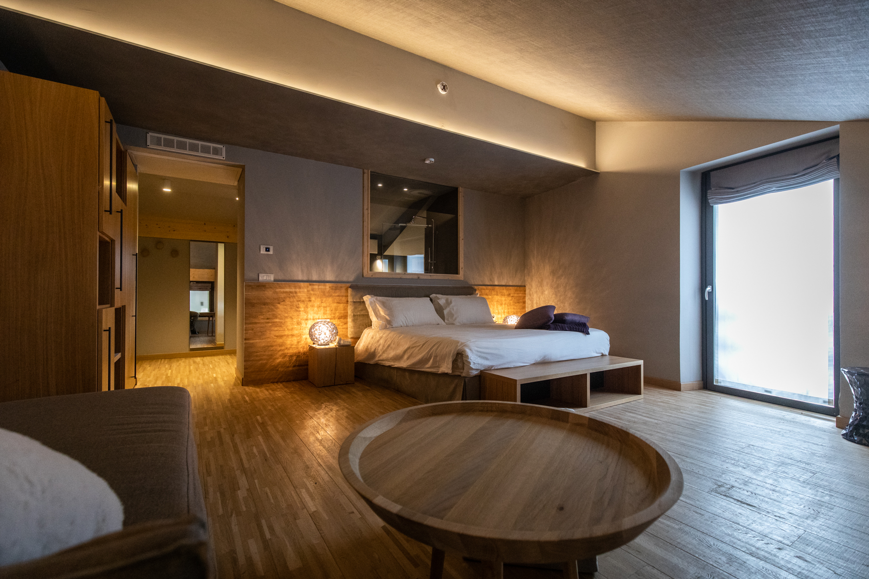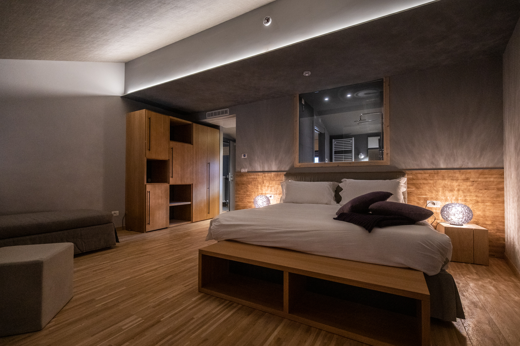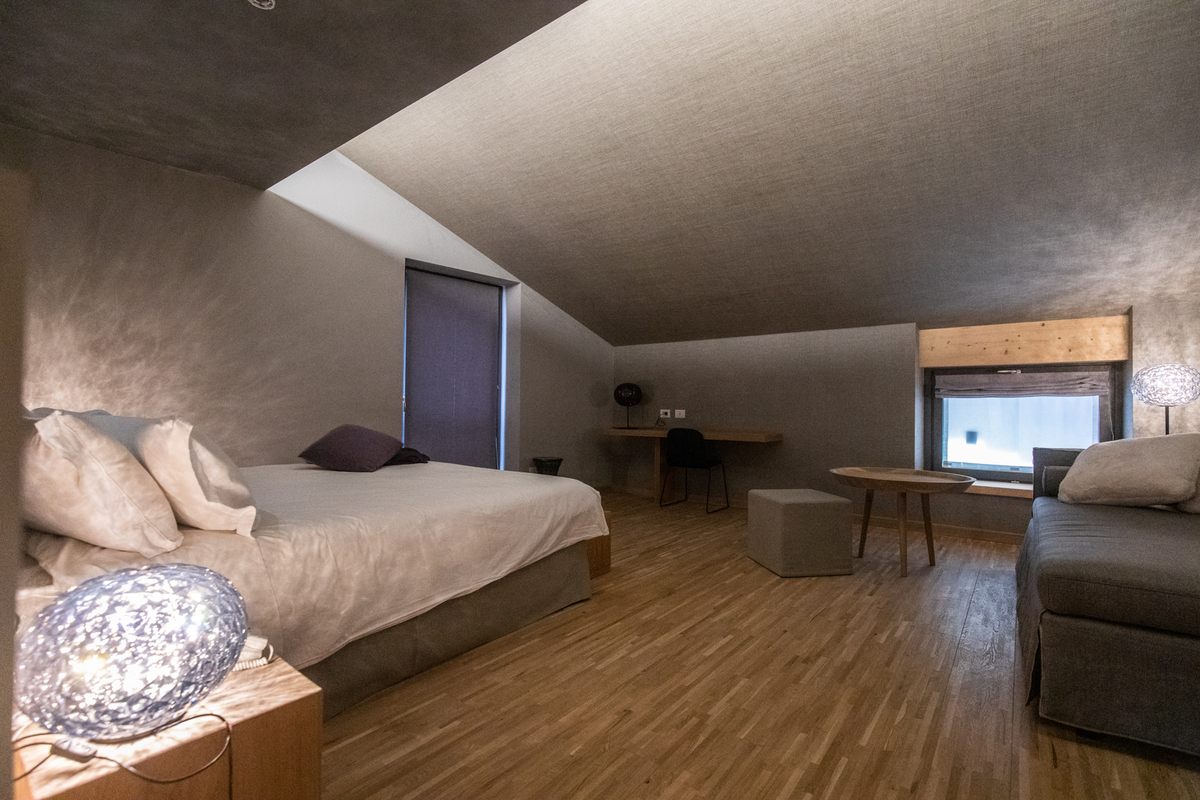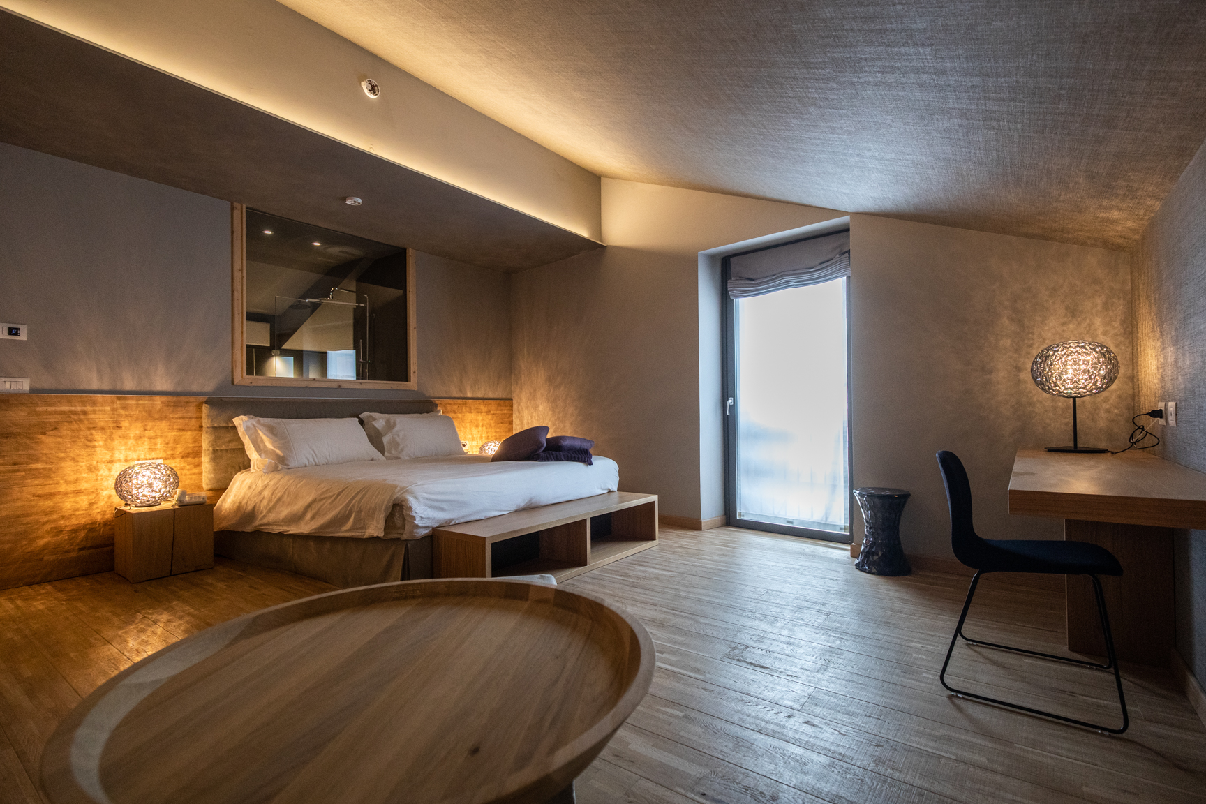 L’ampia camera dall’ arredamento moderno, situata al 2° piano, senza balcone ma con apertura e parapetto. Ospita un letto matrimoniale con letti separabili, divano letto singolo ed eventuale letto aggiunto la stanze si affaccia su borgata Bach. In Stanza troverete, frigo minibar, ciabattine prodotti per l’igiene personale ed asciuga capelli. Su richiesta il lettino da viaggio (0-3 anni). Possibilità di prenotare 2 ore in private spa.
