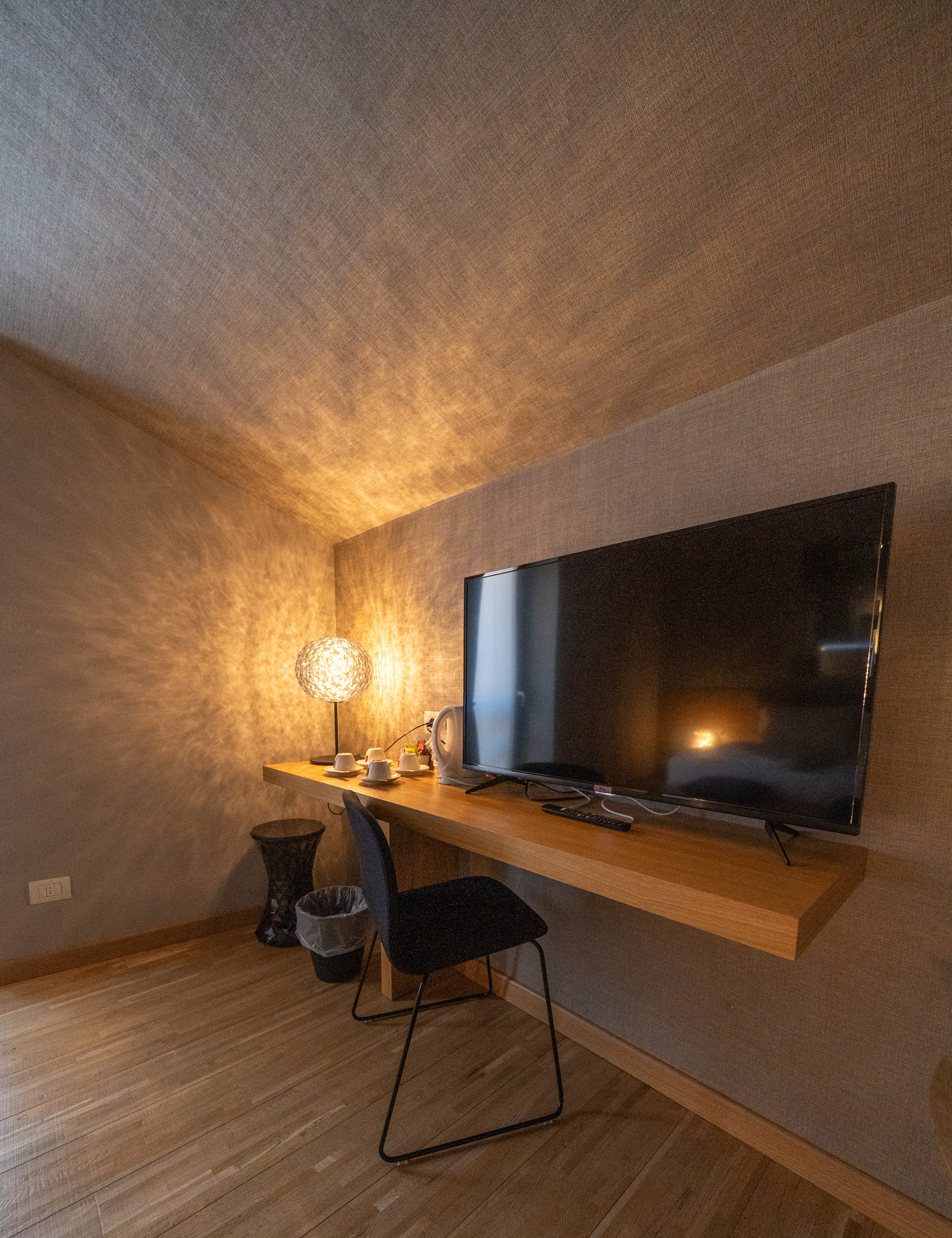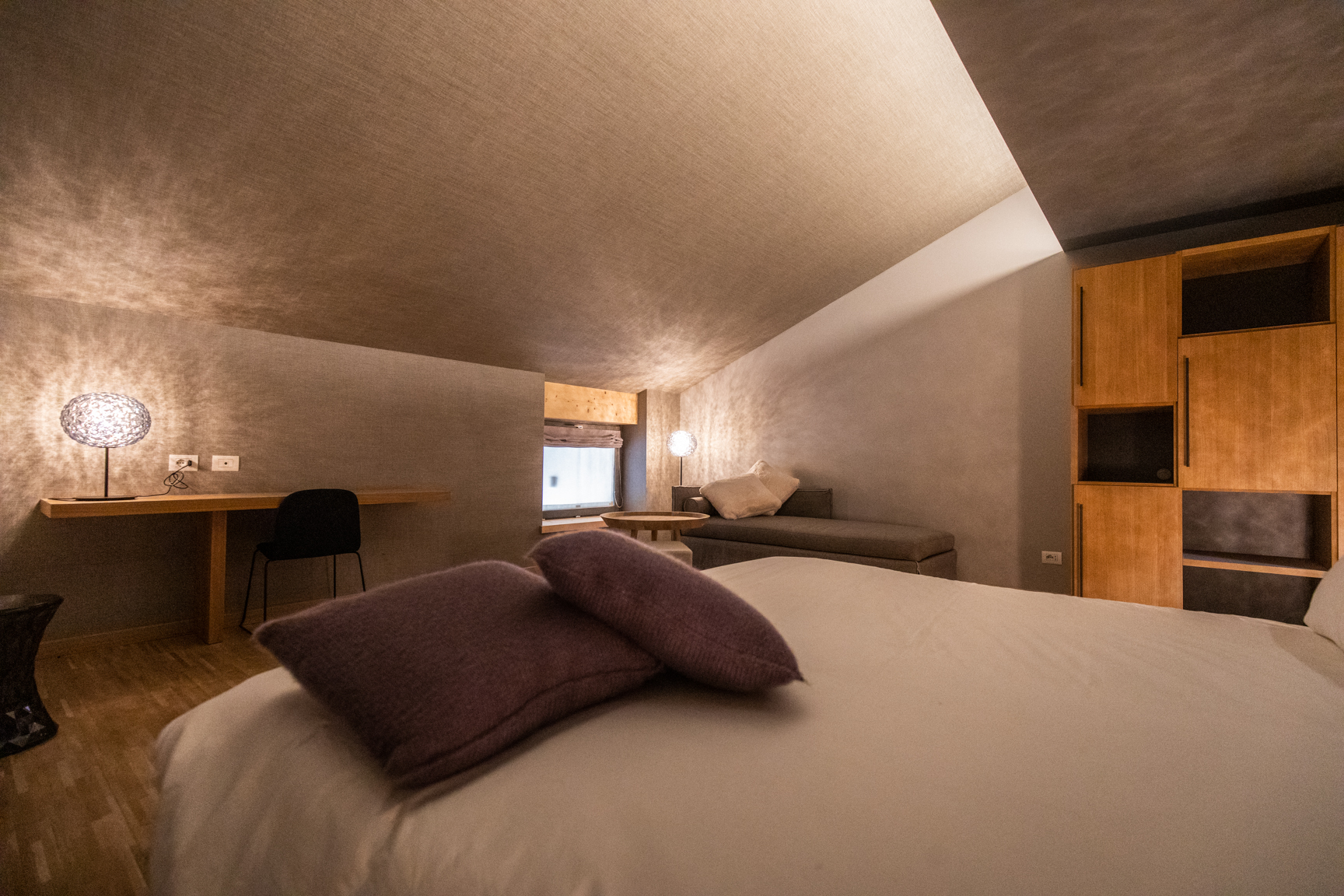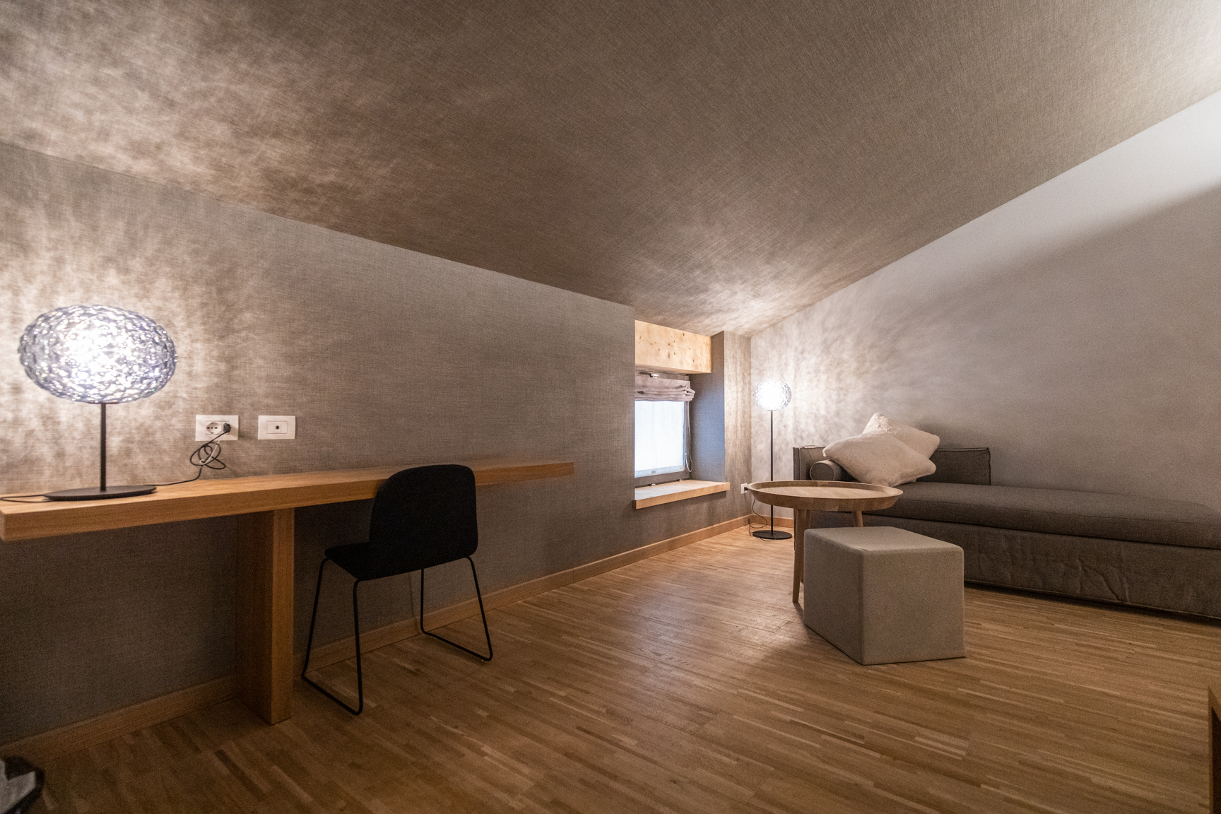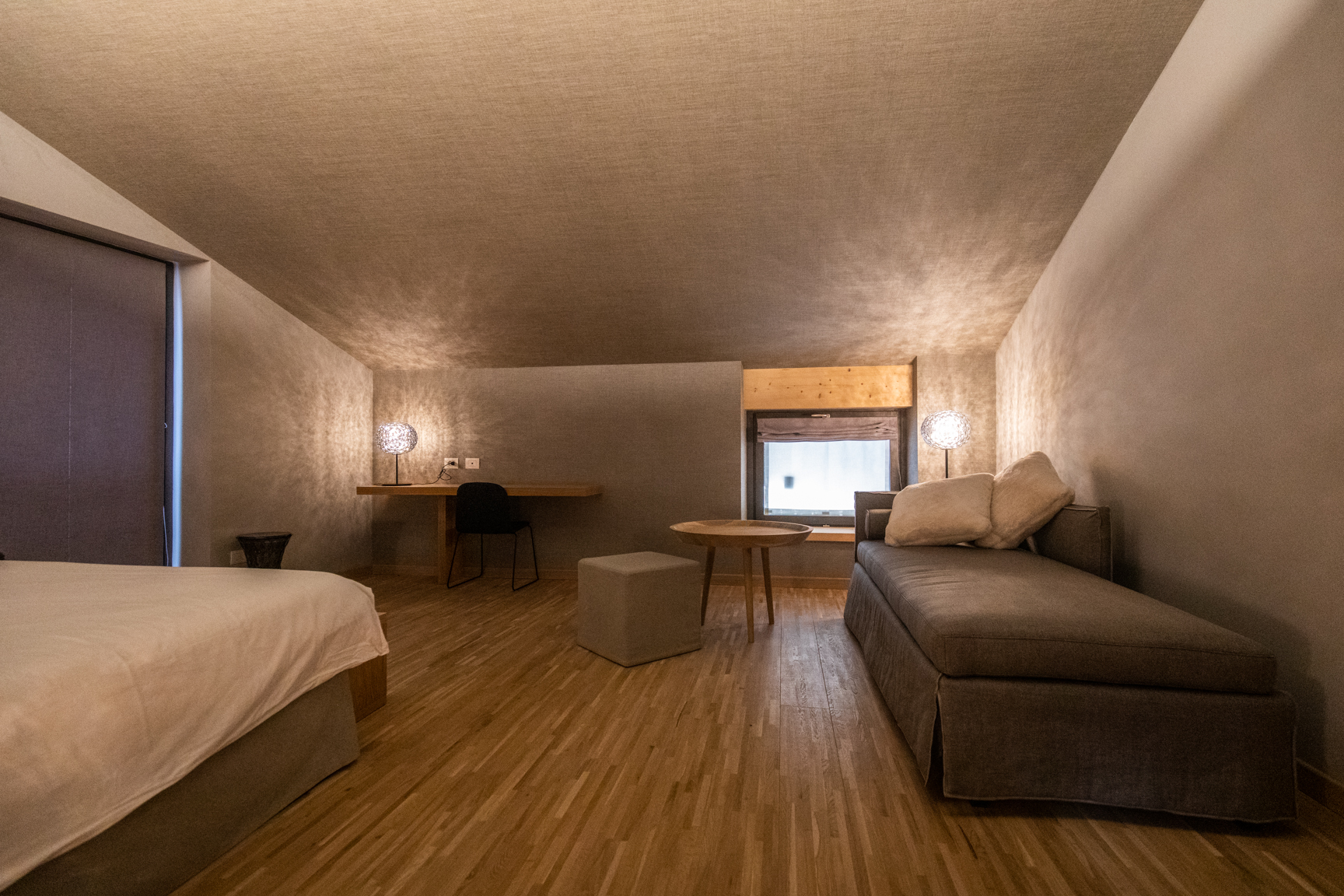 L’ampia camera dall’ arredamento moderno, situata al 2° piano, senza balcone ma con apertura e parapetto. Ospita un letto matrimoniale con letti separabili, divano letto singolo ed eventuale letto aggiunto la stanze si affaccia su borgata Bach. In Stanza troverete, frigo minibar, ciabattine prodotti per l’igiene personale ed asciuga capelli. Su richiesta il lettino da viaggio (0-3 anni). Possibilità di prenotare 2 ore in private spa.